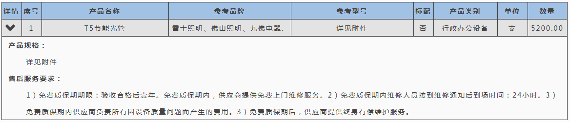 1、竞价人必须是制造商或制造商指定的代理商(经销商)或制造商指定的代理商(经销商)的授权供应商。需提供授权证明文件原件(报名截止后,由我校通知报价最低者提供此文件),无法提供的,视为无效竞价。2、货物免费送达南海校区指定地点安装。3、T5光管参考品牌:雷士照明、佛山照明、九佛电器、百分百照明。4、报价:1)按参考品牌及规格要求报价,否则视为无效报价。2)报价应包括拟提供货物和服务的运输、相关税金、安装、调试、维护等全部费用。报价不得高于预算价,高于预算价的报价无效。5、付款方式:全部货物现场安装完毕并验收合格后十天内支付合同总价的95%,剩余合同总价5%作为质保金在验收合格一年后10天内无息支付。付款时间为买方向政府采购支付部门提出支付申请的时间(不含政府财政支付部门审查的时间)。